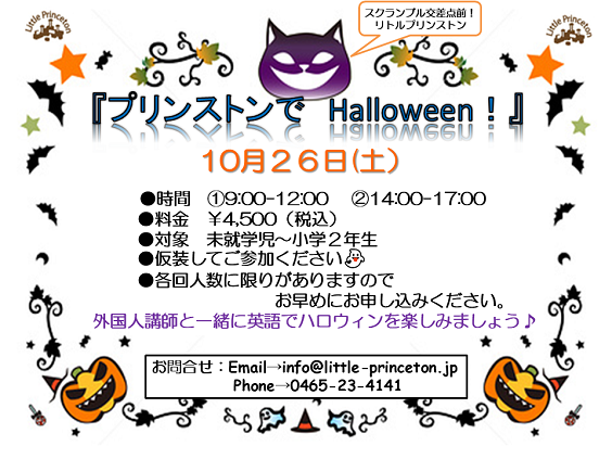 プリンストンでハロウィン開催 2025 5/19 お問い合わせ先 楽しく学べる英会話教室リトル・プリンストン〒250-0011神奈川県小田原市栄町1丁目14-15 0465-23-4141 お知らせ 夏のスペシャルレッスン開催 冬季限定スペシャルレッスン開催